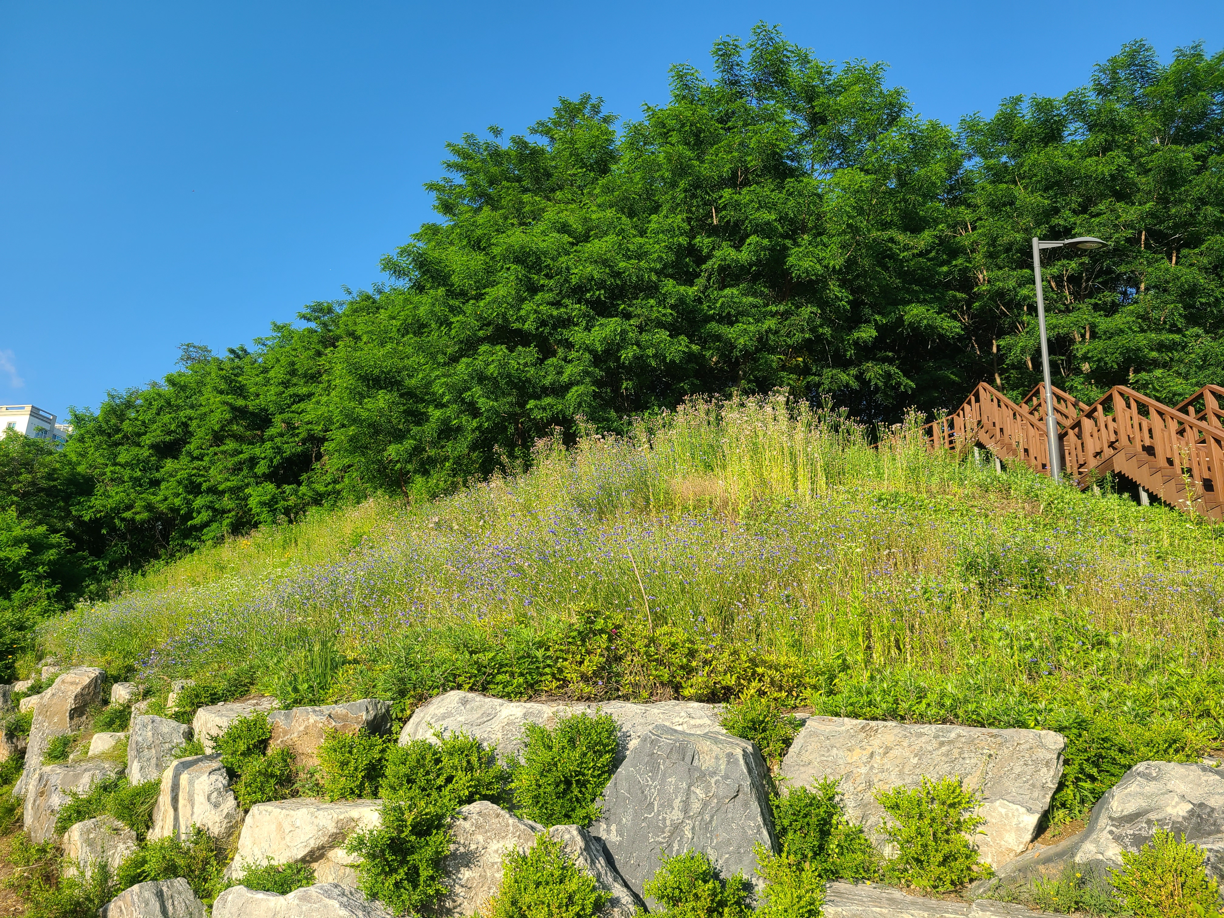날씨도 좋고 나무도 멋지고. 들꽃도 예쁘고.
